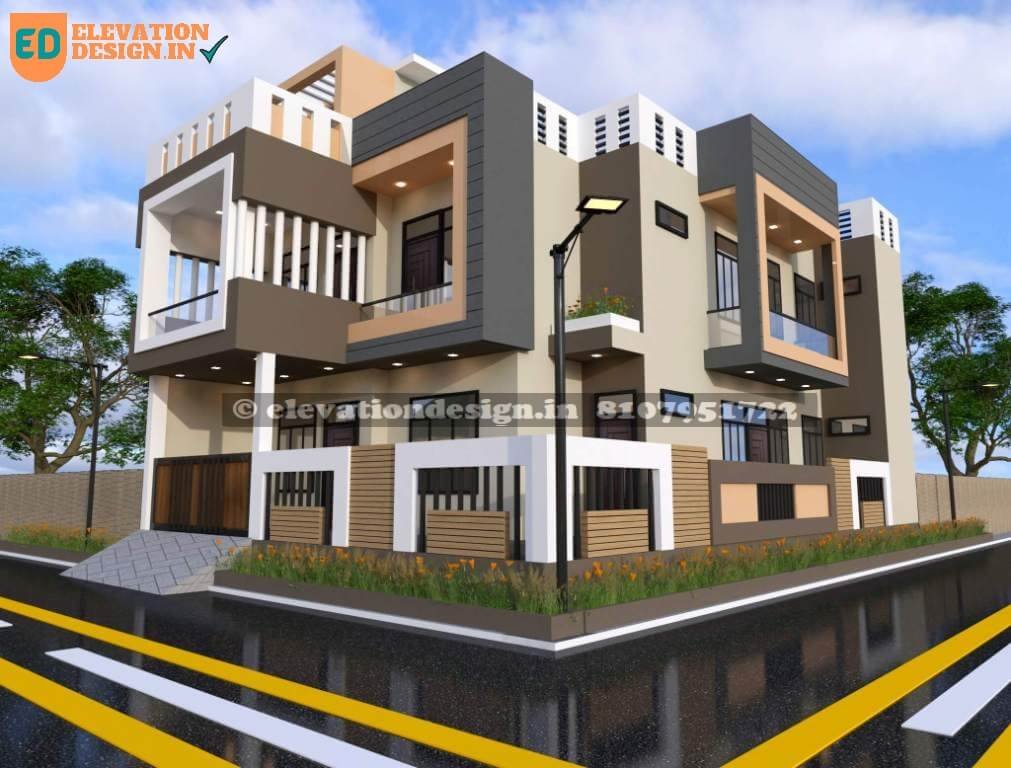 Tags: 3 BHK house plan, Compound wall ideas, contemporary Indian home, Corner plot house, exterior design, front elevation design, G+1 elevation, Glass balcony design, HPL sheet elevation, Indian villa design, Luxury home India, Modern facade, Modern house design, residential architecture, Unique home exterior