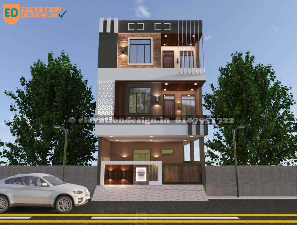 Categories: 20 ft Elevation Design, 3 floor elevation design, Modern Elevation Design, West Facing Elevation Design